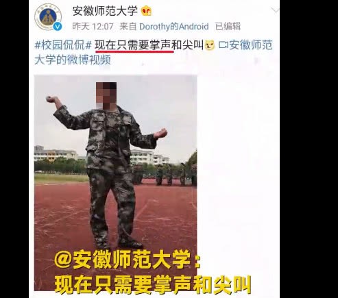 而之后,安徽师范大学的官方微博竟然也被小哥哥妖娆的舞姿所倾倒了,翻拍小哥哥。称赞到,现在只需要掌声和尖叫声。如果是晚上,是不是还需要拿出手机,打开电筒,给小哥哥打光啊。