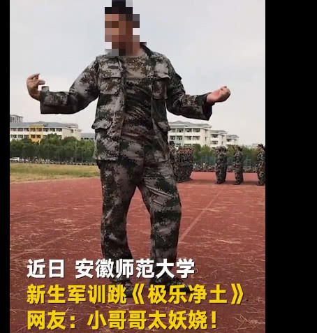 近日,在安徽师范大学新生军训期间,一名身穿迷彩服的男生在操场上跳了一曲《极乐净土》,他妖娆舞姿惊艳全场。大家全都在尖叫在欢呼,可能也引得旁边在认真军训的小伙伴心里痒痒的吧。