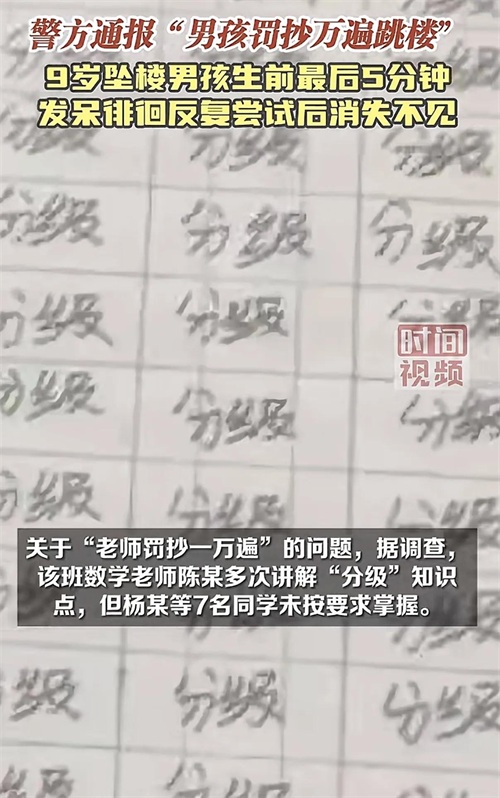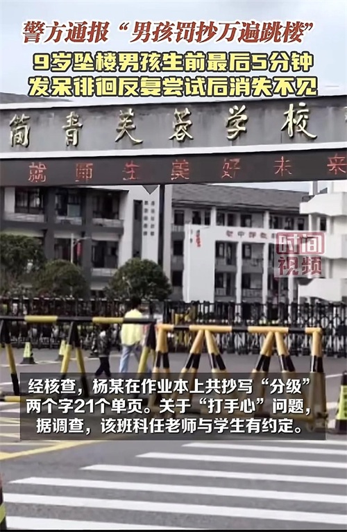 湖南岳阳9岁学生被罚抄写万遍作业,被老师打手心,被逼跳楼轻生