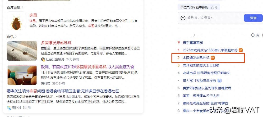 近日据多家媒体报道,全球多国出现了床虱危机,已冲上热搜。