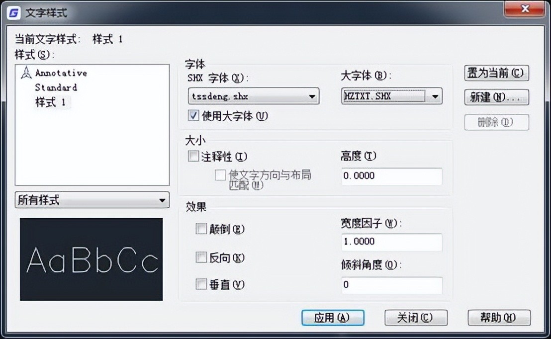 输入st打开文字样式;