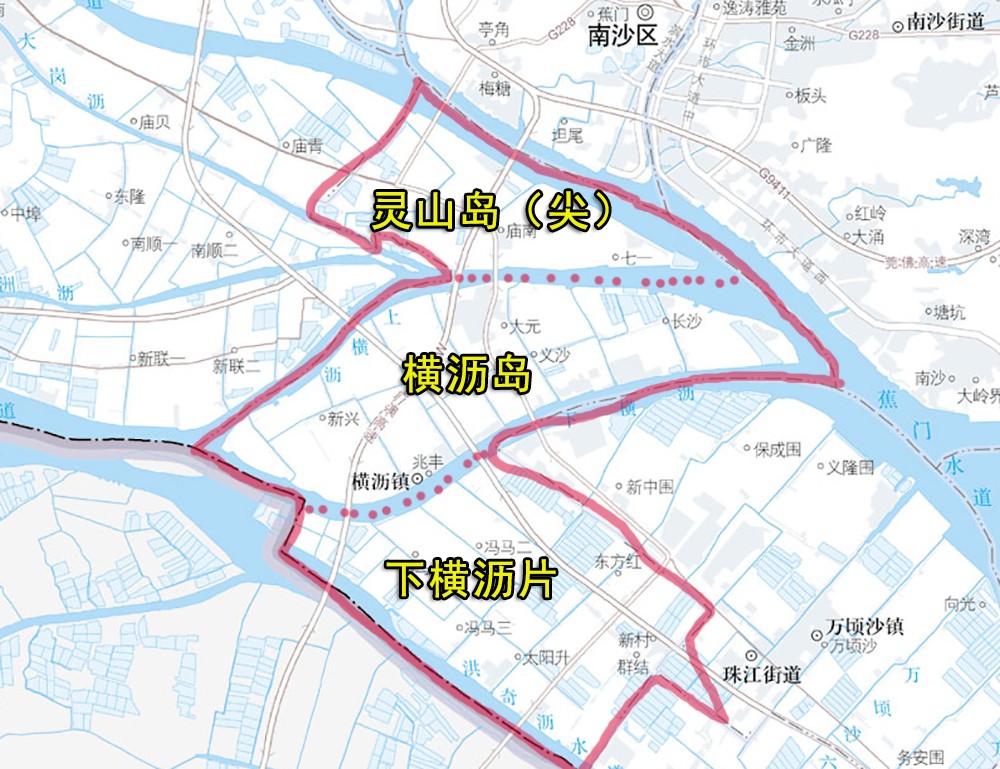 不过横沥镇还有一处“风水宝地”,那就是北部的灵山岛尖,这块区域因和南沙城区一水之隔,而显得潜力巨大。这里开发建设了明珠湾,按照城市标准打造,规模比横沥镇区要大很多。