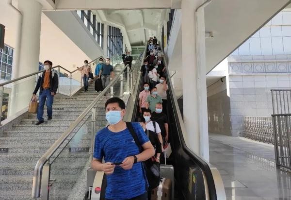 赶着体验动车直达便利的旅客们