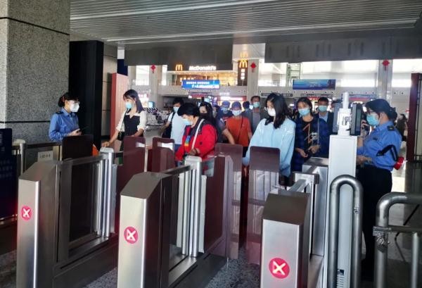 一边有序进站候车