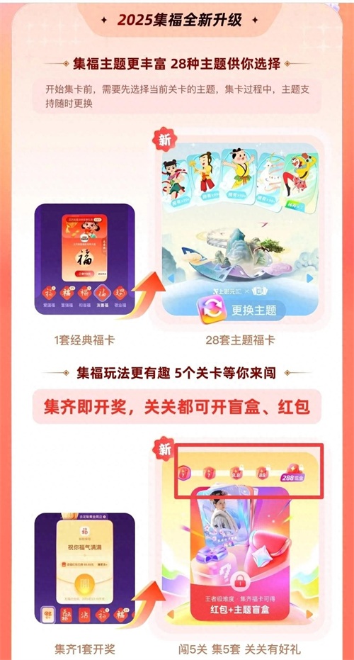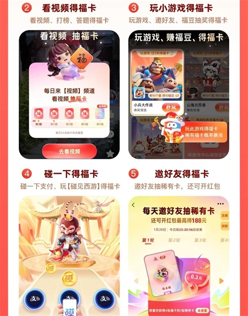 支付宝集五福升级版,最高可得288元,你喜欢今年的集卡方式吗?