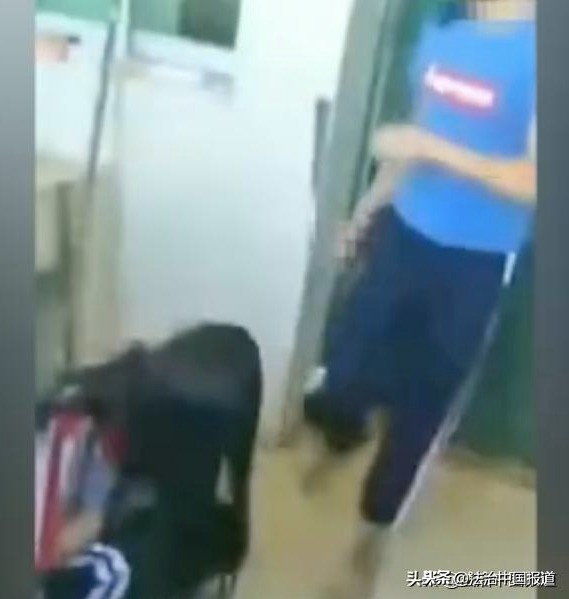 网传视频显示,一名身穿白色短袖、黑色长裤的女生跪在厕所外的地板上,周围有多名女生对其进行殴打、辱骂。其中,一名身穿蓝色短袖、黑色长裤的女生多次拖拽被打女生头发,并在将其踹倒在地后,一边扇其耳光,一边喊着,“别哭,你别哭”。同时,另外几名女生也在此过程中用脚踹被打女生腹部,或用手扇被打女生面部。更有甚者,趁被打女生倒地蜷缩颤抖时,双脚站在被打女生的背上,使劲蹲跳。