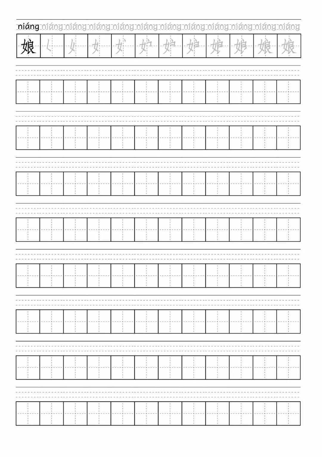 娘字的田字格字帖(可保存图片打印给孩子练习)