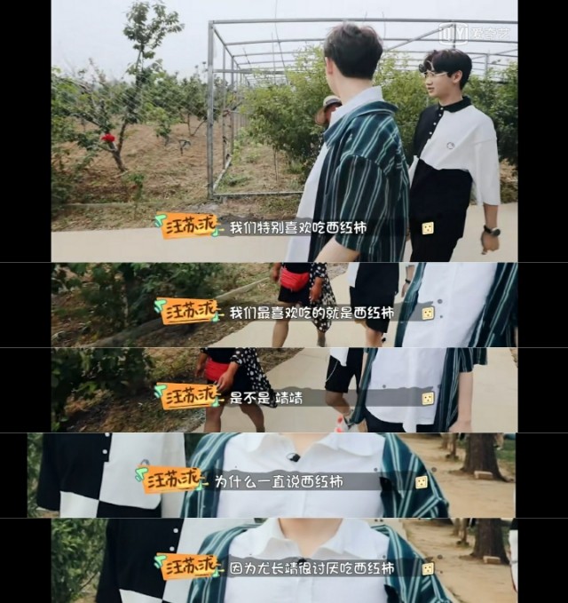 在节目中,汪苏泷也经常会逗尤长靖,知道他减肥,于是引诱他吃巧克力;知道他不喜欢蚕蛹,于是以情“要挟”;知道他不喜欢西红柿,还说最喜欢吃西红柿。