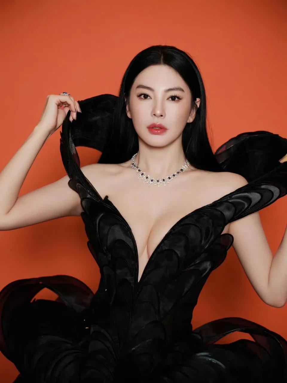 身着黑色抹胸长裙的蒋欣美艳又大气,一颦一笑间都是风情万种。即使年过四十,还能这么好的状态,实属难得。