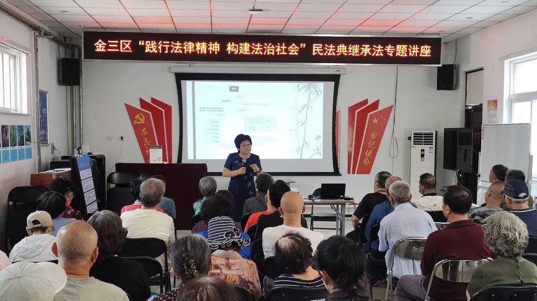 9月份,石景山区金顶街街道金三区社区邀请社会志愿师资力量,开展普法教育,宣传法律知识,为居民解决了贴近生活的子女财产继承问题的许多困惑。