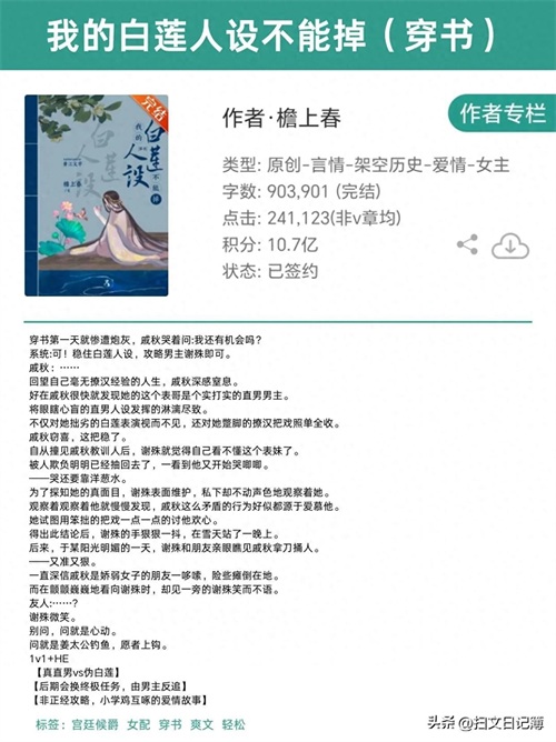 1.《我的白莲人设不能掉(穿书)》作者:檐上春