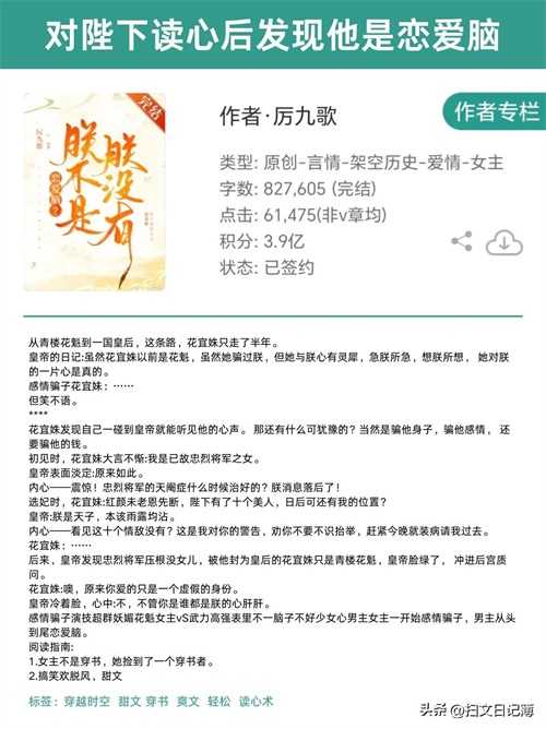 7.《对陛下读心后发现他是恋爱脑》作者:厉九歌