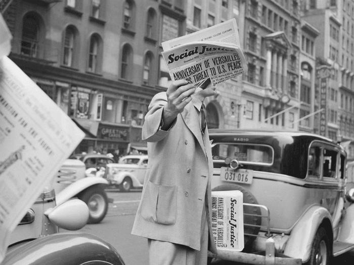 考夫林的法西斯转向,与他对罗斯福的态度密切相关。在1932年选举期间,考夫林认为罗斯福是“银行巨头的敌人”,也是应对失业问题的救命稻草,他甚至在广播里大声高呼,“要么罗斯福,要么毁灭”