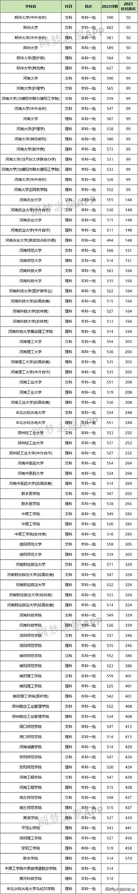 2023年全国排名第99,在河南省最低分为文科547分、理科526分,理科分数超过河南省一本线分数。