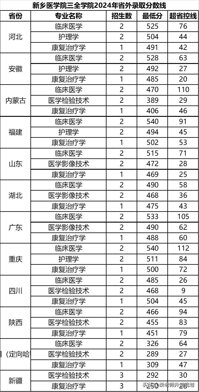 四、新乡医学院三全学院2024年在其他省份录取情况如下: