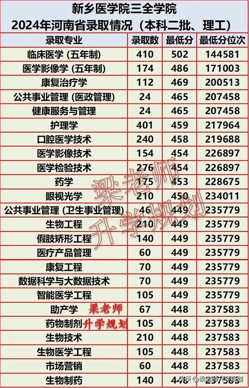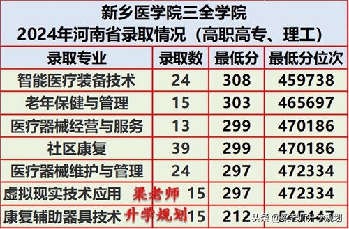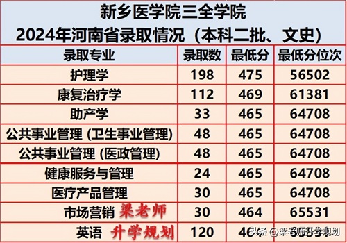 新乡医学院三全学院2024年在分省分专业录取分数汇总
