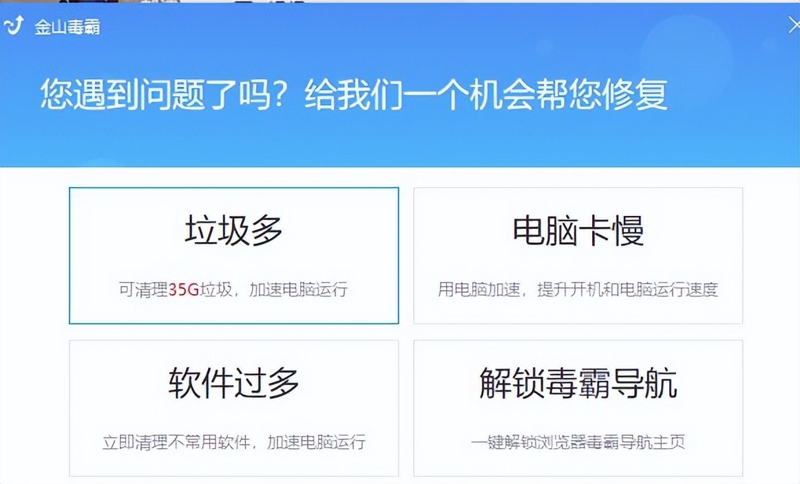 我选择了垃圾多,金山毒霸直接