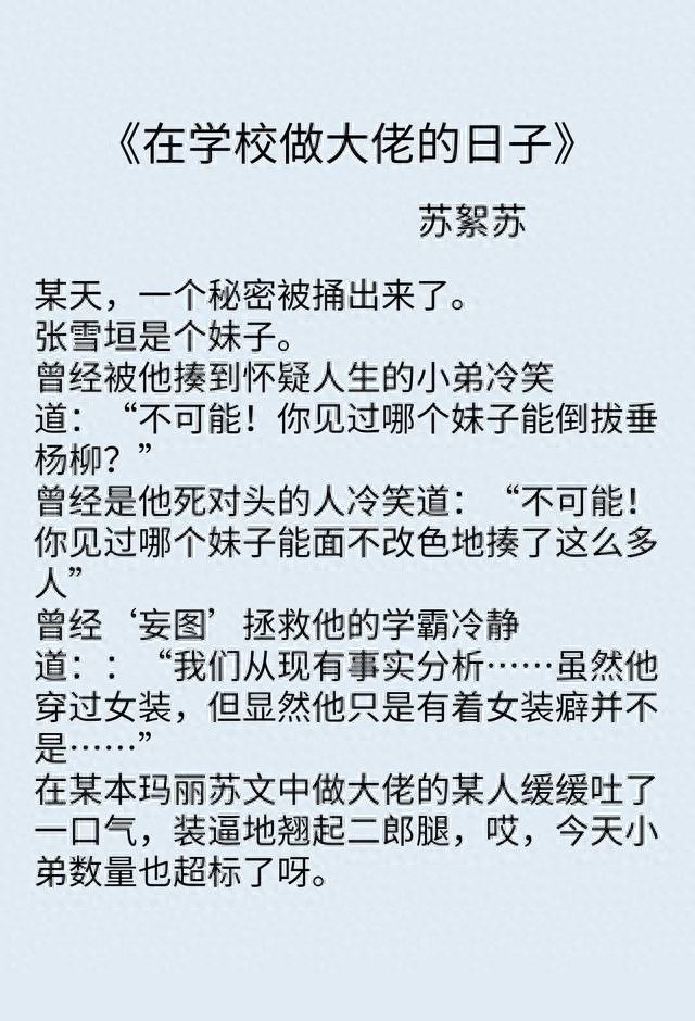五本女扮男装文《在学校做大佬的日子》《权宦倾城》《暖香云绕》