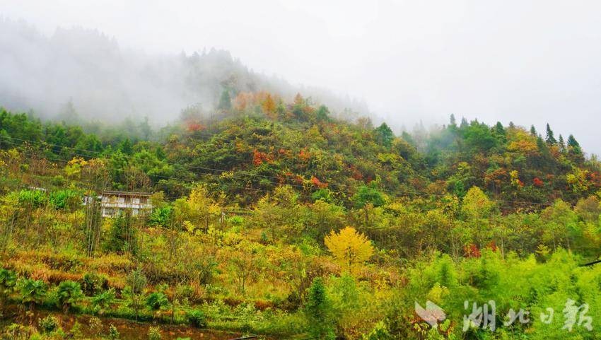 湖北日报客户端讯(通讯员杨琼)细密的冬雨,晕了山色,染了枫叶,为这冬日的画卷增添了一抹朦胧与神秘。鹤峰的高山之巅,落叶已归根,它以飘零的仪式感,宣告着秋的离去与冬的降临,而低山的秋天,却似乎还在眷恋着秋意,并不急于退场,它以一种温柔而坚韧的力量,与冬雨交织出一幅幅别样的景致。