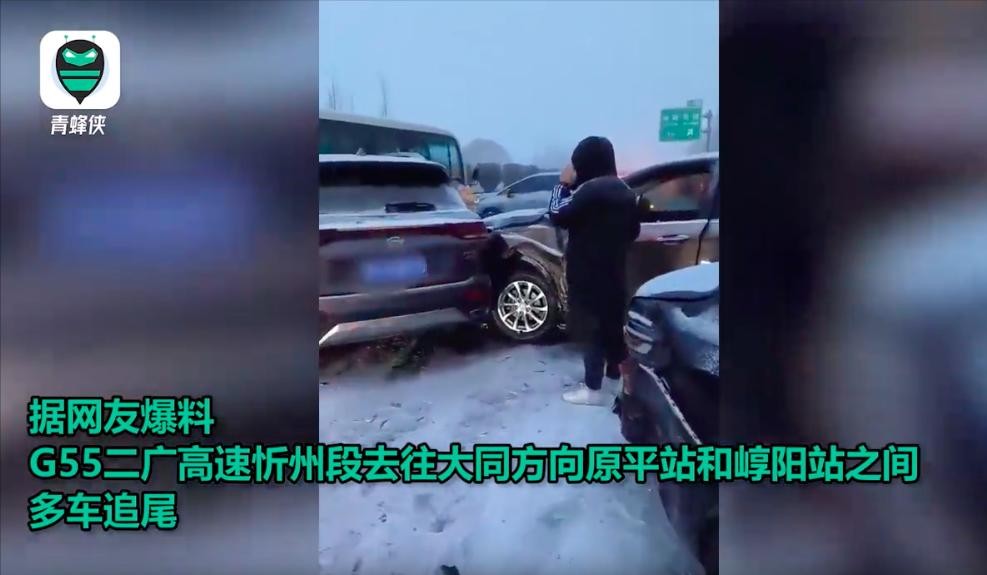 12月10日,山西G55二广高速忻州段去往大同方向,原平站和崞阳站疑因下雪路滑原因发生多起交通事故。