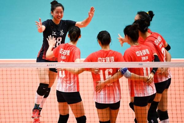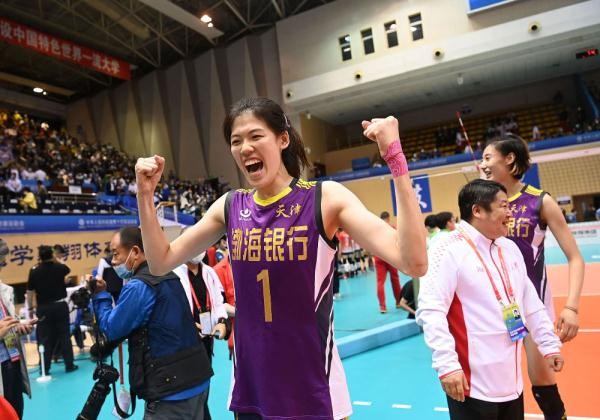 9月26日,在西安举行的第十四届全运会排球女子成年组决赛中,天津队以3比1战胜江苏队,夺得冠军。