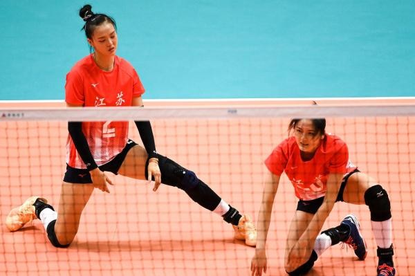 ️江苏队球员张常宁(左)在比赛中。新华社记者 颜麟蕴 摄