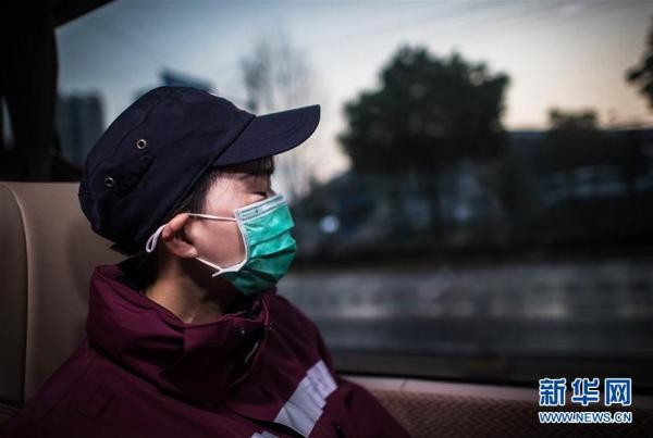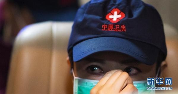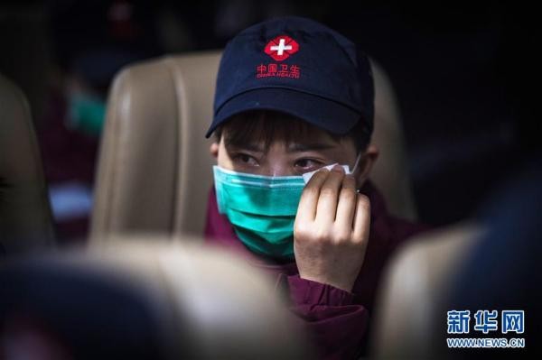 3月17日,陕西国家紧急医学救援队队员闵渝婷在返程途中擦拭眼泪。 当日,承担方舱医院任务的援鄂医疗队陆续开始撤离。在离别之际,医护人员与现场工作人员纷纷落下眼泪。 新华社记者肖艺九摄