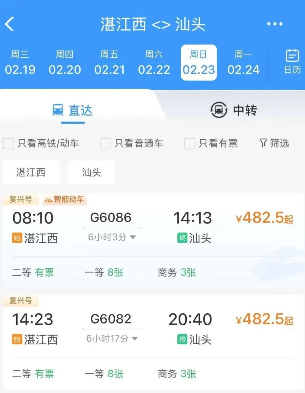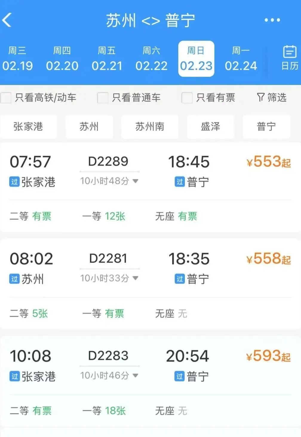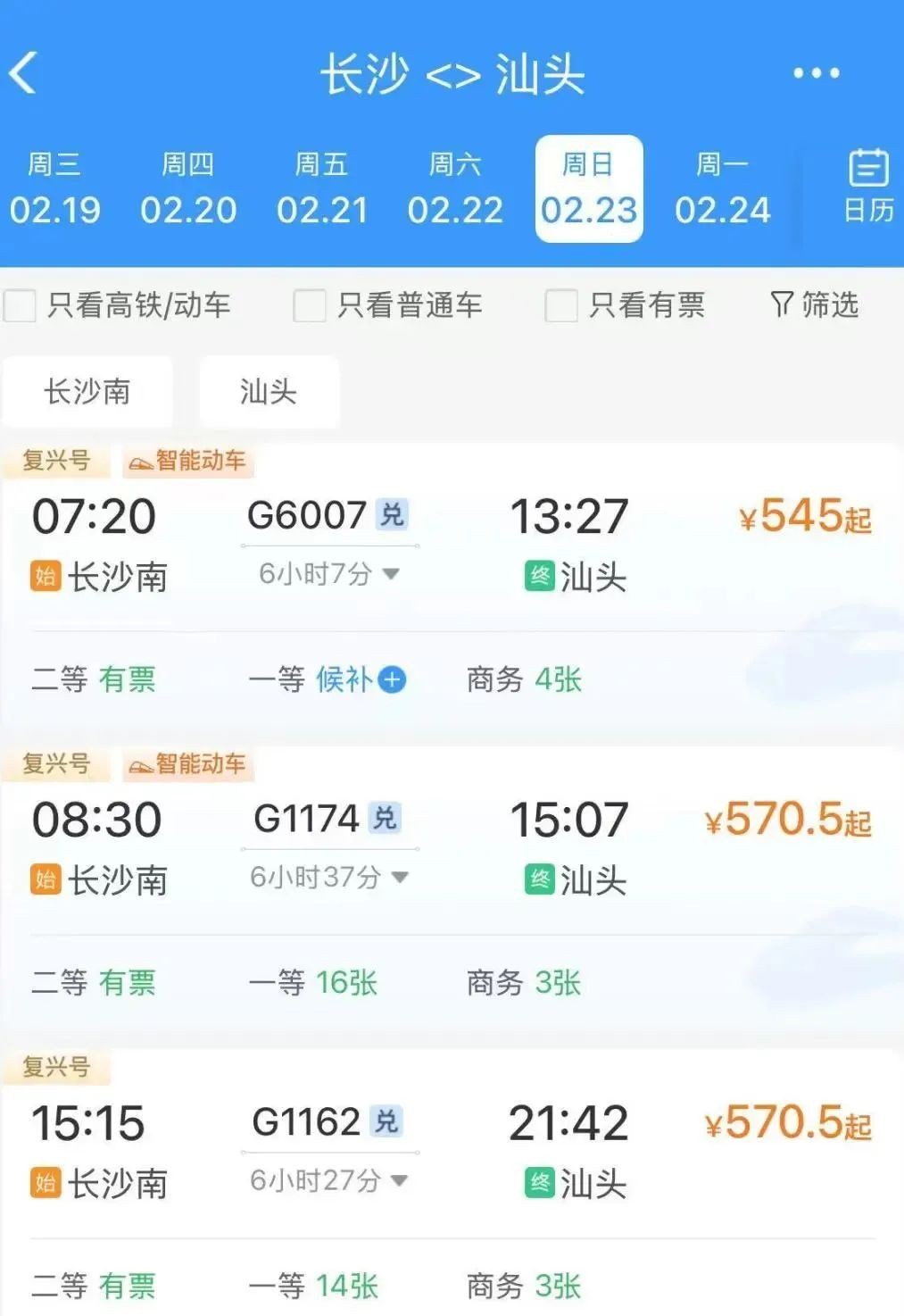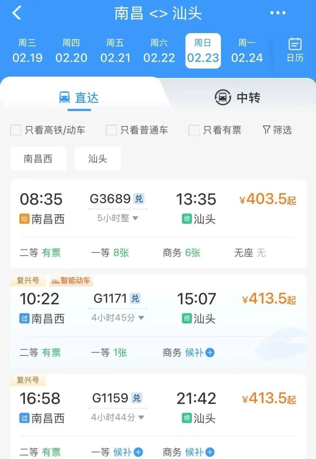 推荐车次