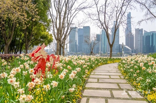 这次新晋登场的洋水仙花语为“新的开始”,它的出现不仅代表了春日回归,而且也为奋进中的北外滩带来了美好的祝福。