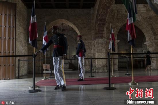 图为多米尼加共和国卫兵在进行换岗。