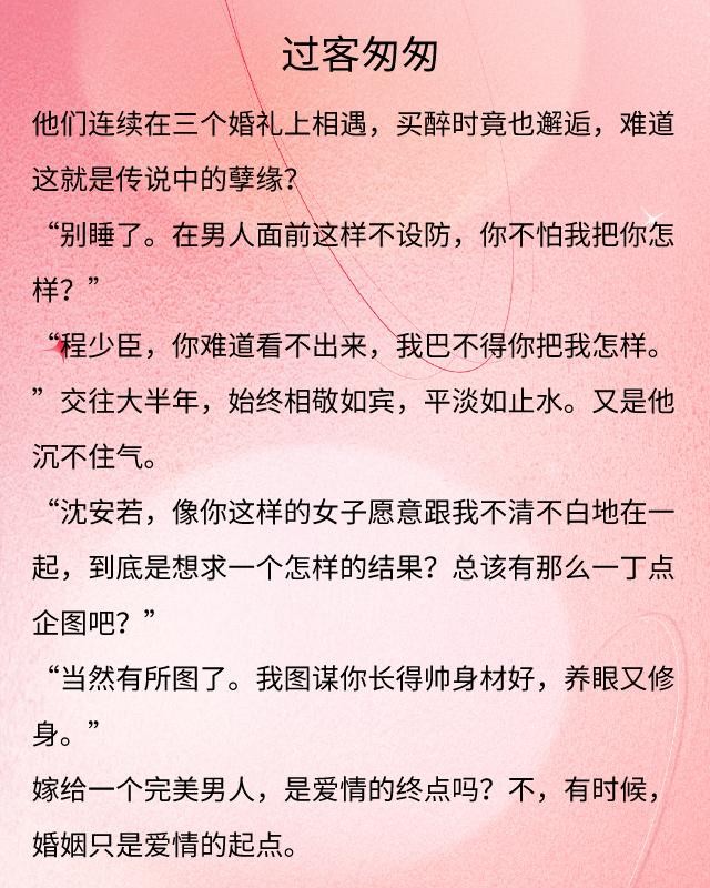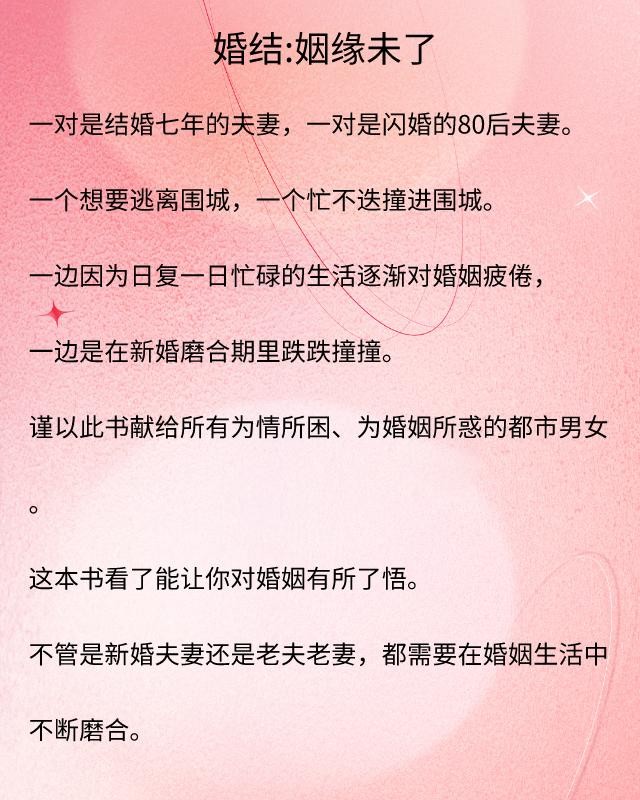 飘阿兮的这本小说更为现实,更能表达婚姻的现实与真相,虽然看似是群戏,但每个角色都仿佛从他们身上找到影子,剧荒时值得一看。