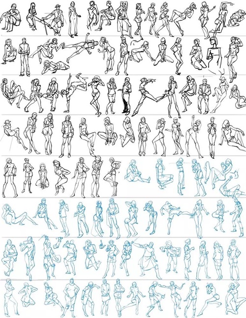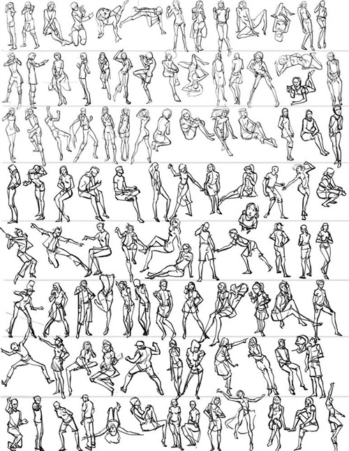 画人物速写不再难,500个人物速写动态图,画好速写的必备资料
