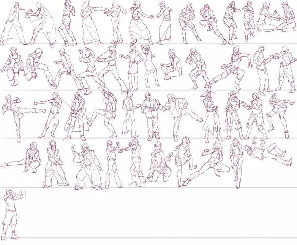人物速写,最难画的就是动态比例。今天分享一些人物动态干货,可以收藏临摹。