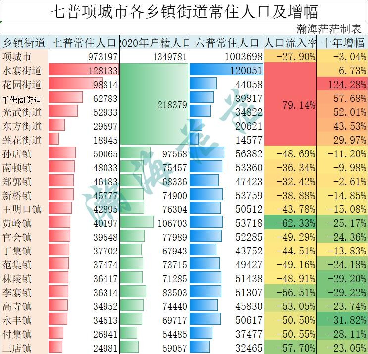七普项城市各乡镇街道常住人口,人口流入,人口增幅,谁超10万人