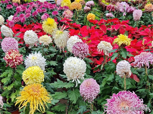 各色菊花,一团团,一簇簇,争奇斗艳。