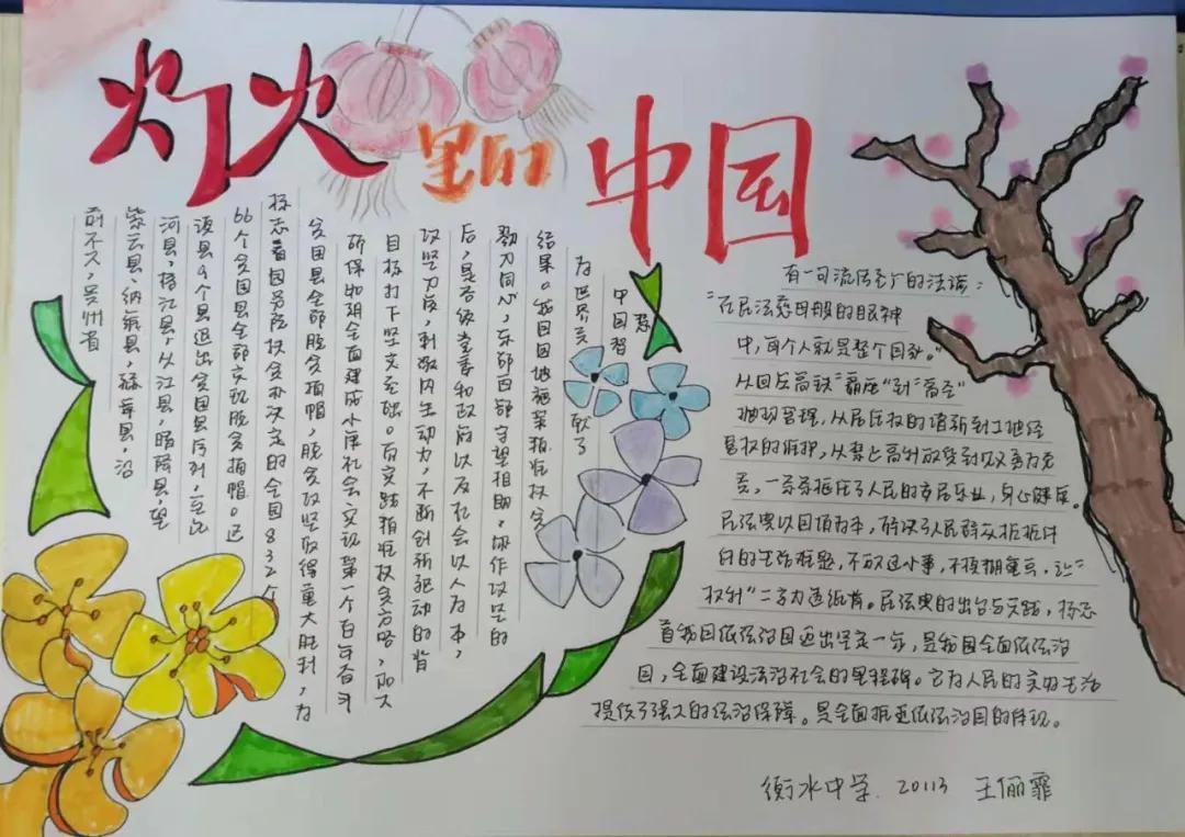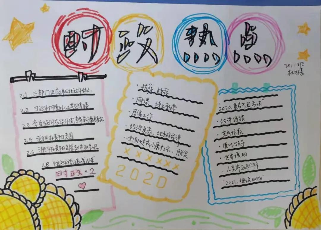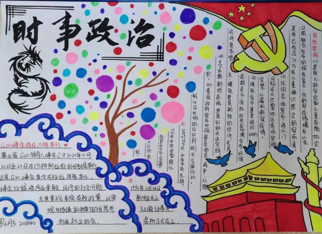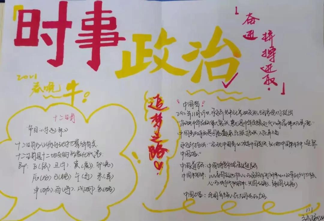 最近,衡水中学高一年级就举办了“心系国家事,勾勒时政图”手抄报活动。