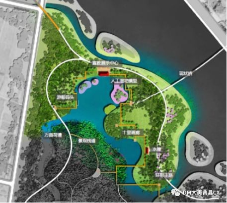 恢复重建区位于湿地公园生态保育区与合理利用区之间的环线部分,包括现有部分水田,面积206.5万㎡。