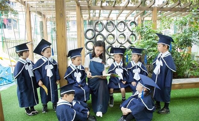 第二张图片中,幼儿园的孩子们褪去了童装,一个个的都穿起了毕业的学士服。孩子们穿着学士服,围绕着站在中间的老师,看上去也是有模有样,整个画面充满了童真。