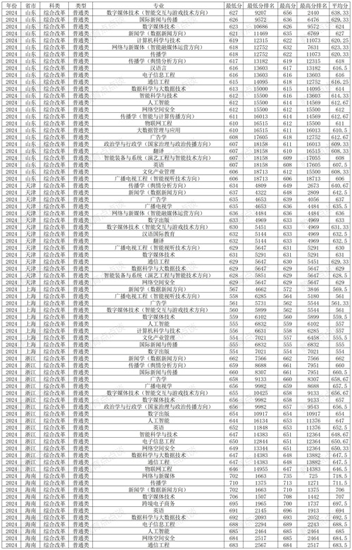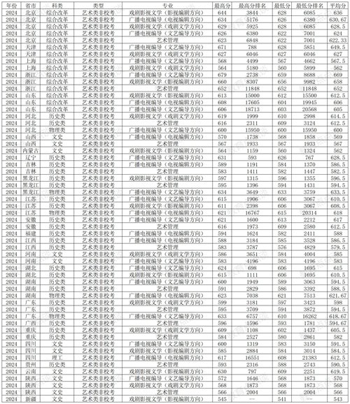 四、中国传媒大学2024年在传统高考省份各专业录取分数线