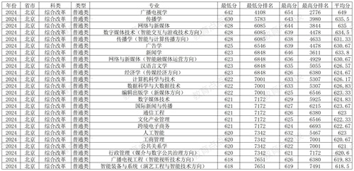 一、中国传媒大学2024年在北京各批次各专业录取分数线