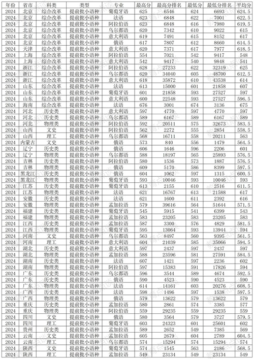 六、中国传媒大学2024年提前批(小语种)在各省各专业录取分数线