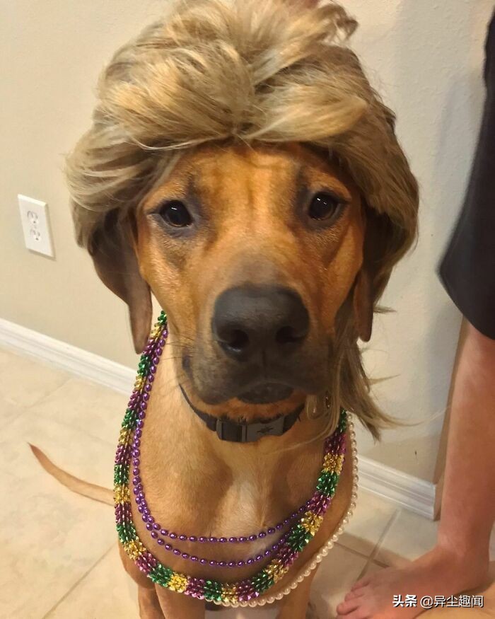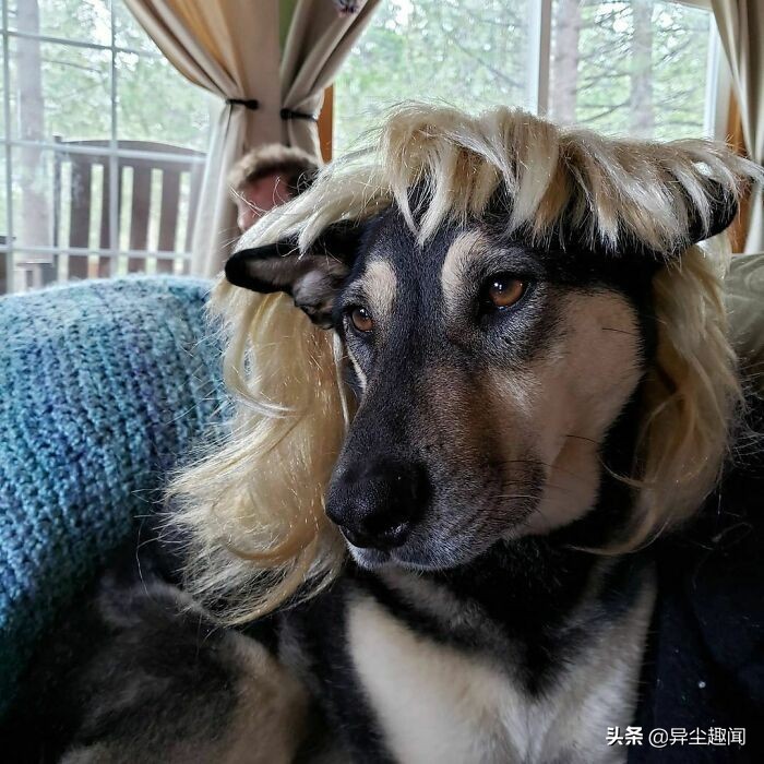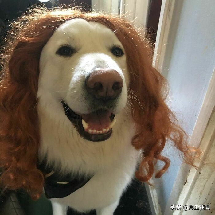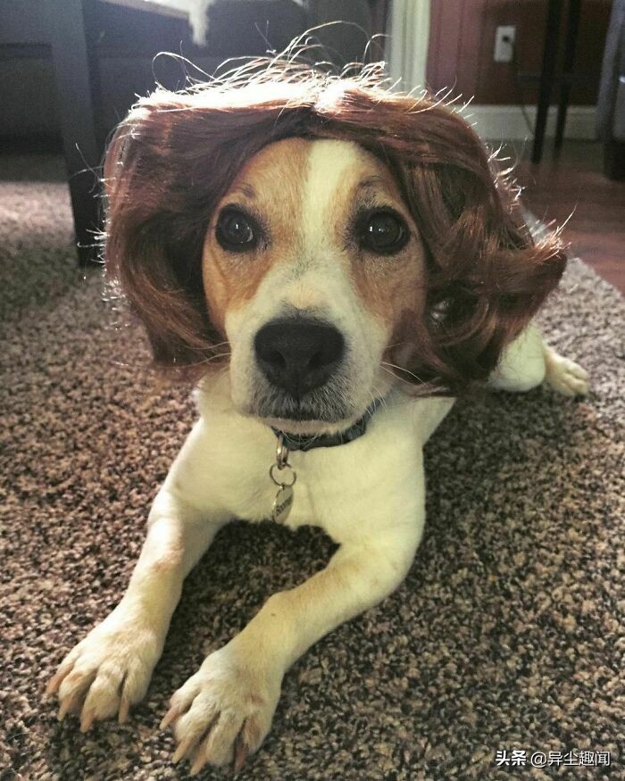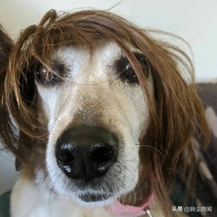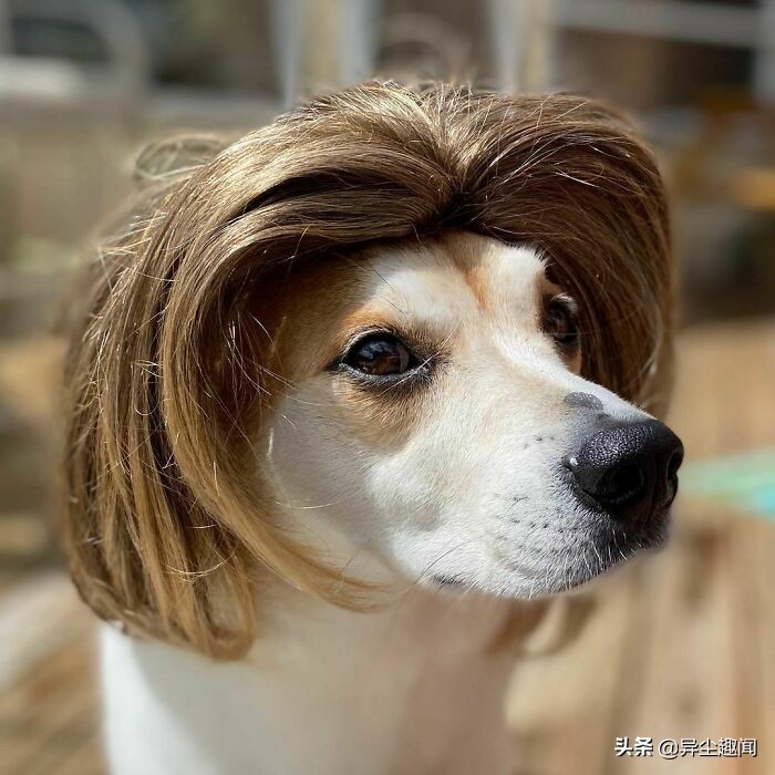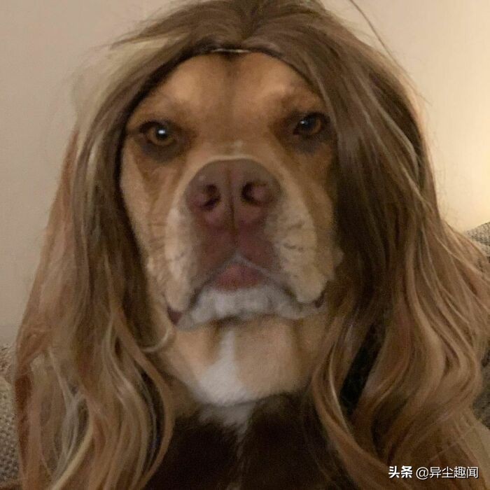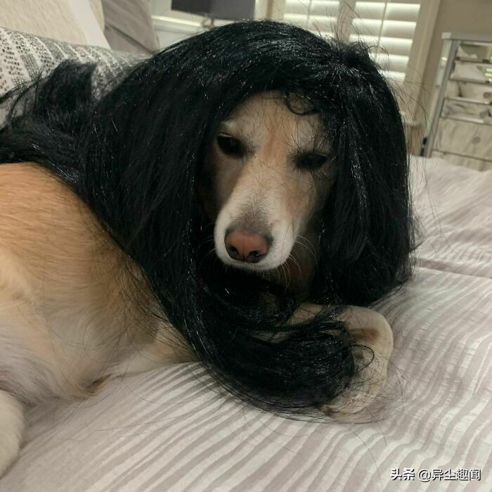 50张带假发的宠物狗的搞笑照片,看了以后让您的一天变得更加美好