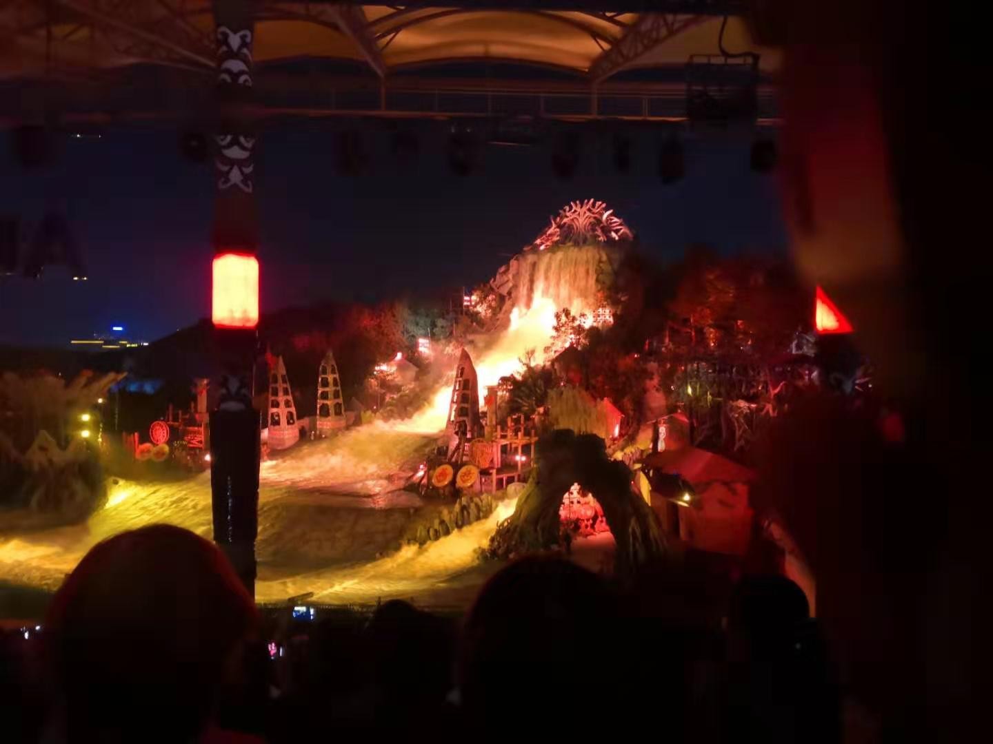 接着7点就是梦幻谷两大经典之一的《暴雨山洪》的演出时间了,是一个集声、光、电、影视特技、舞蹈艺术为一体,融古老、原始、神秘、宗教、自然于一身的大型实景“灾难性”演艺项目。怪异神秘的傩舞求雨仪式,暴雨如注、山洪如兽的灾难场景,气势磅礴、险象环生!