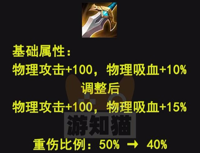 这次体验服更新,回调了制裁之刃的价格,增加了5%的吸血和降低了10%的重伤效果。
