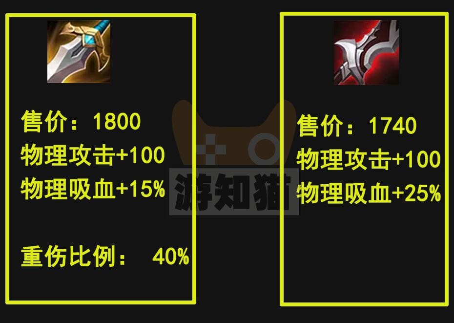 就游知猫个人而言,我比较倾向制裁之刃,毕竟价格和伤害都差不多,虽然吸血效果不太高,但对于射手完全够用了,而且重伤效果的存在,相比之下的泣血之刃,性价比就没有新版制裁之刃高了。