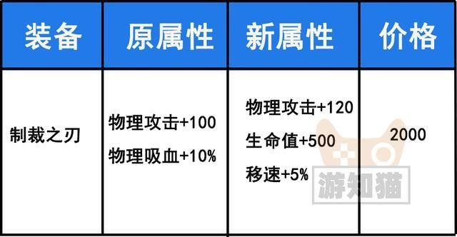 制裁之刃之前的调整是增加了生命值和移速,不过价格也同样提升了200金币。