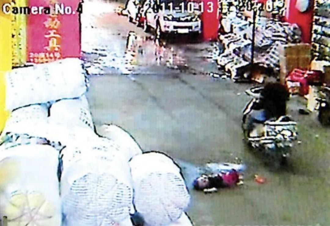 2011年广东佛山,2岁女童小悦悦在一个小巷子里被一辆面包车两次碾压,随后又被一辆货柜车碾压。令人痛心的是先后路过十八个路人,无一人出手相救,都视而不见冷漠离开。小悦悦送医后抢救无效后死亡,幼小的生命还未绽放就凄然凋谢。