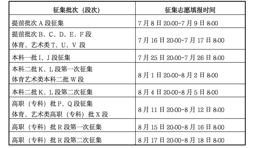 三、征集志愿时间安排