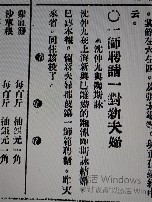 一九二三年三月十六日,《湖南大公报》第七版,一则报道:沈仲九在上海新与已离婚的湘潭陶斯咏结婚,已誌本报。俩新夫妇都被第一师范聘请,昨天来省,同往该校了。