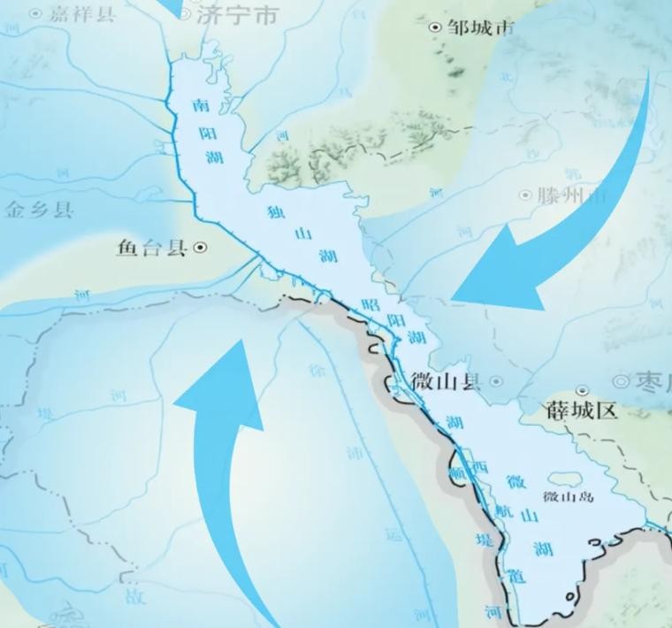 准确来说,南四湖并不是一个单独的湖泊,而是微山湖、昭阳湖、独山湖、南阳湖四个湖泊的总称,因此位置距离较近,再加上有河道连接,因此一般也按照一个单独的湖泊来看,整个湖泊的总面积约为1266平方千米,正常水位时,库容量约为47亿立方米,洪水水位时最大库容可以达到50亿立方米以上。